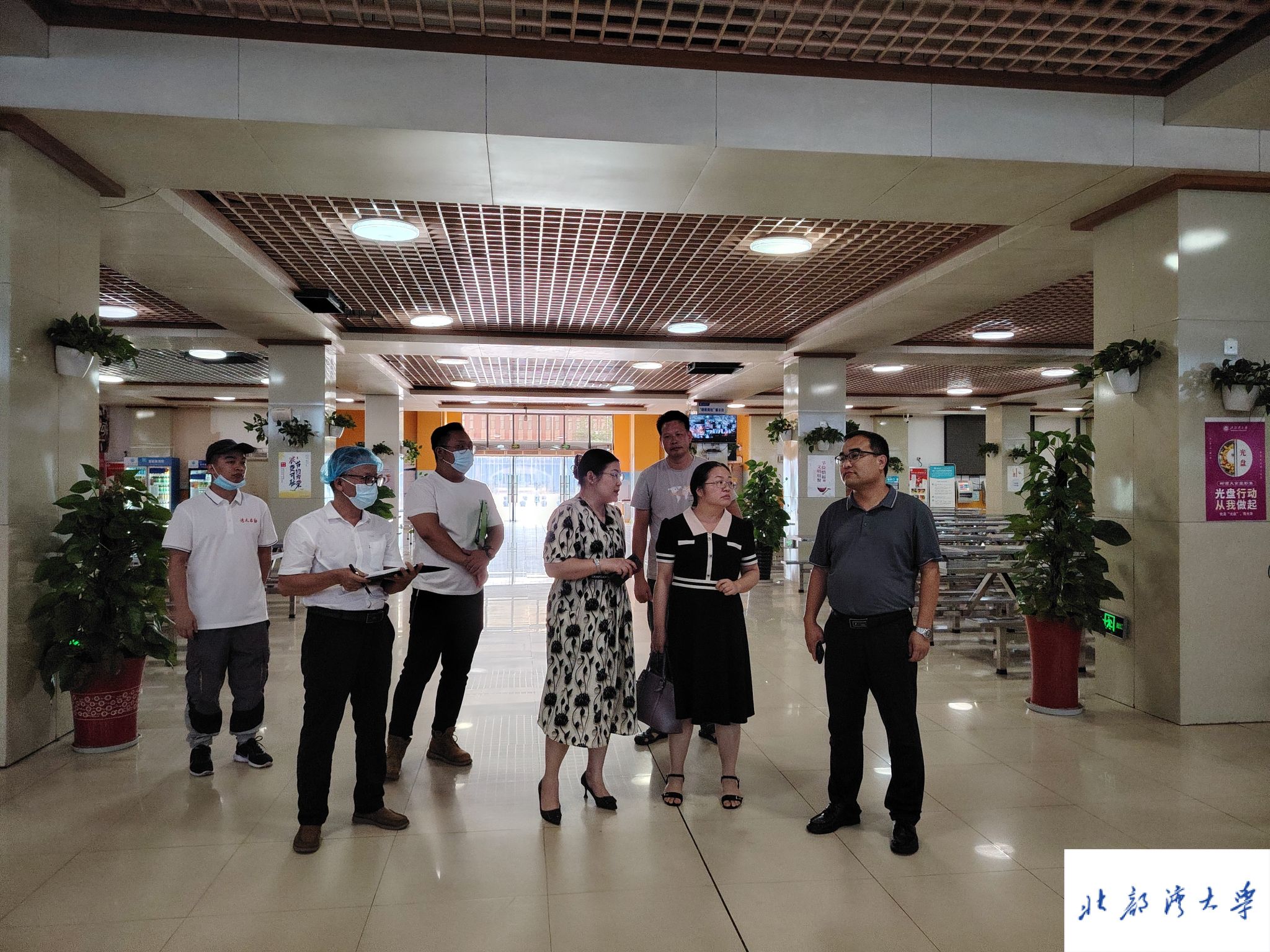 马秀明认真察看了两个食堂各楼层设施设备运行和环境卫生情况,详细了解食堂暑假的抽排烟改造和空调改造等工程的维修整改工作。同时深入主副食仓库、蒸饭间、洗消间、蔬菜加工区等部位,对食材储存保管、加工制作、备餐、清洗消毒、场所环境和设施设备等重点管理环节进行了细致检查。