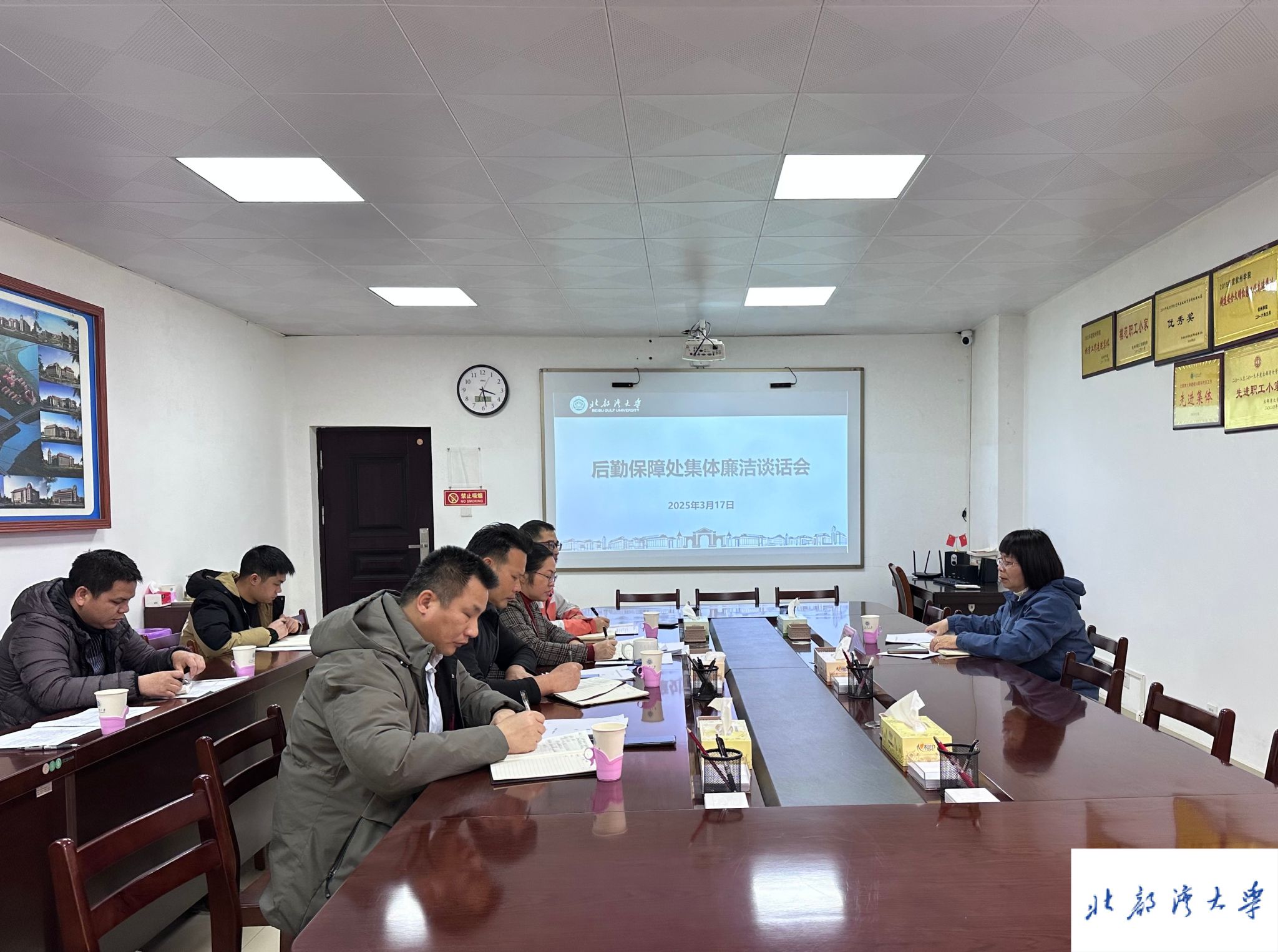 2025年3月17日下午,校党委常委、副校长陆衡在办公楼118会议室召开后勤保障处领导干部集体廉洁谈话会,后勤保障处全体中层领导干部及科室负责人参会。