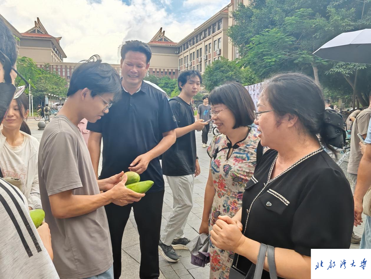 校党委常委、副校长陆衡亲临现场,与广大师生在夏日炎炎中感受师生共享芒果自由的湾大情谊。活动现场,领到水果的师生脸上洋溢着在湾大实现芒果自由喜悦的笑容,现场气氛在夏日的衬托下更为热烈。